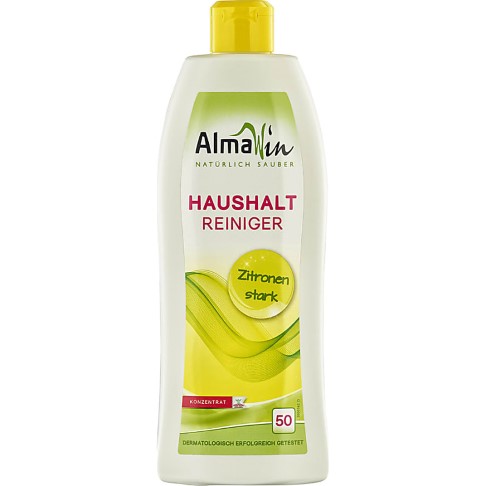 Mild to the skin, but tough on dirt and grease Fragranced with certified organic essential lemon, mint and eucalyptus oils Universal cleaner for use on all hard surfaces, e.g. tiles, floors, varnished areas. Successfully Dermatologically Tested Not tested on animals Size: 500ml Alma Win Household Cleaner Concentrate - Ingredients: Saccharoidal surfactants, Fatty alcohol sulphates, Alcohol, Lactic acid, Sodium chloride, Sodium carbonate, Benzyl alcohol, Wheat proteins, Essential oils (lemon, mint, and eucalyptus*), Water * Certified organic Read more
